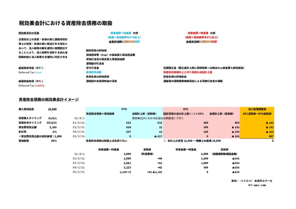 資産除去債務という論点自体の難易度はそれほど高くなく、将来の資産除去費用の見積り・割引率が変わったときの処理を忘れやすい程度ですが、これが税効果会計の対象となると処理は難しくなります。